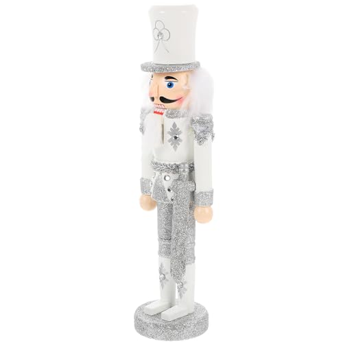 NIYANGLE Marionnette Casse-Noisette en Bois Peint la Main, Décoration de Noël Traditionnelle Argentée Paillettes, Figurine Festive pour Salon, Bureau ou Table, Accessoire Déco de Fête