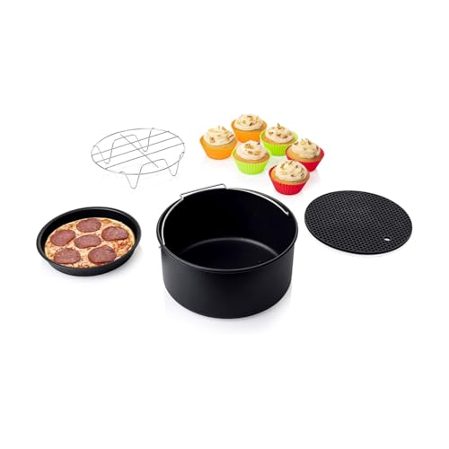 Wintem Lot de 10 accessoires pour friteuse à air ronde avec plaque et casserole en métal, 6 moules en silicone et tapis - Idéal et adaptable à différentes tailles de friteuses - faciles à laver