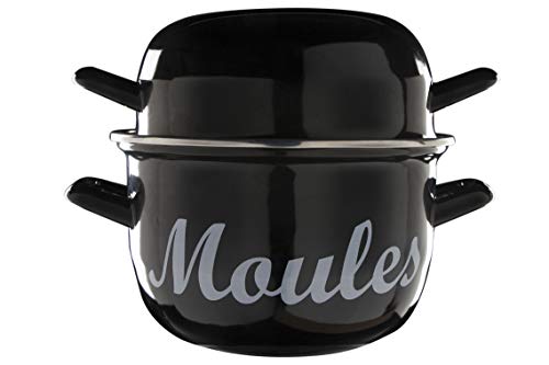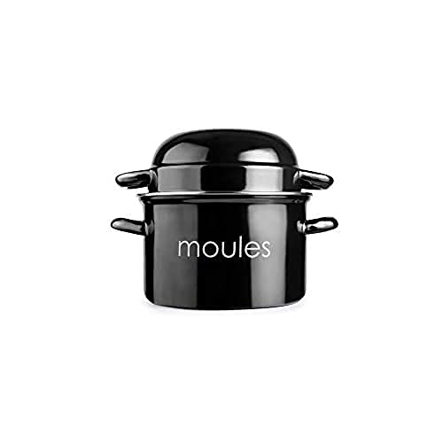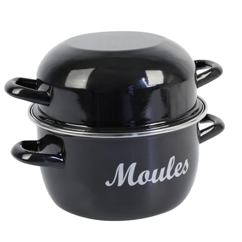 Crealys 545411 Marmite à Moules traditionelle en Acier Emaillé Noir Ø20 cm, 2,8 Litres - Casserole à moules compatible tous feux dont induction