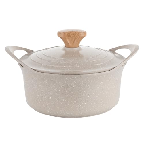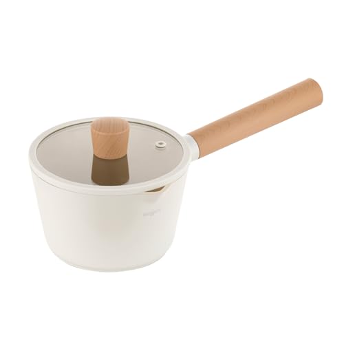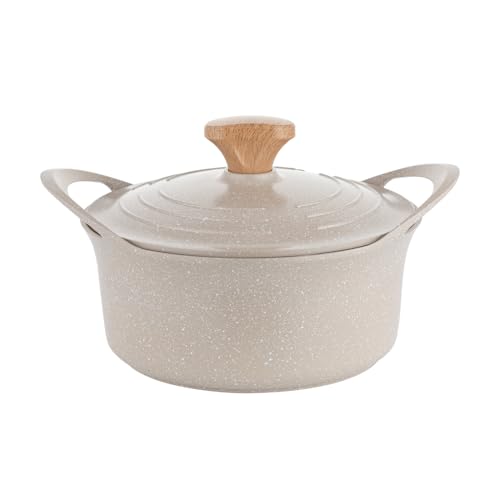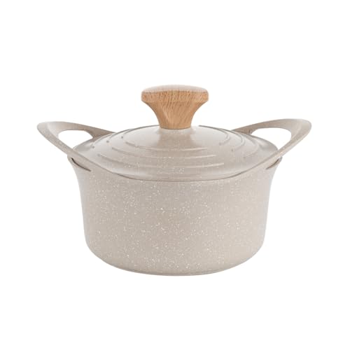 FLORINA Nube Casserole en aluminium | 16 cm | 1,6 l | Compatible induction | Revêtement céramique anti-rayures | Poignée aspect bois Soft-Touch | Résistant à la chaleur, Beige