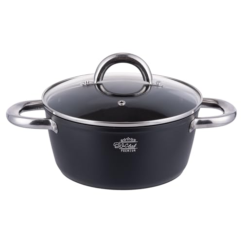 MasterChef Casserole Tout Feux, Induction, Gaz, Céramique et Plus, Anti-adhésive, Revêtement Anti-Dérapant, Poignée Ergonomique, Couvercle en Verre, 20cm, Noir