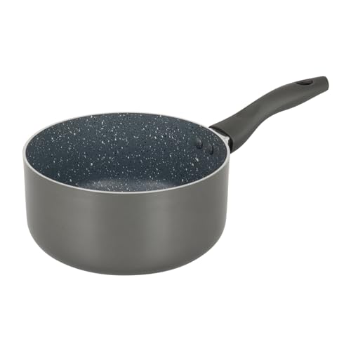 Crealys 539347 Casserole Aluminium AUTAN Ø 16 cm H 8 cm - Revêtement Antiadhésif Sain en Céramique effet pierre - Coloris Gris - Manche thermorésistant silicone - Tous feux dont induction