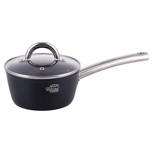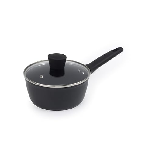MasterChef Casserole Tout Feux, Induction, Gaz, Céramique et Plus, Anti-adhésive, pour le Lait, la Soupe et plus Encore, Revêtement Anti-Dérapant, Poignée Ergonomique, 16cm, Noir