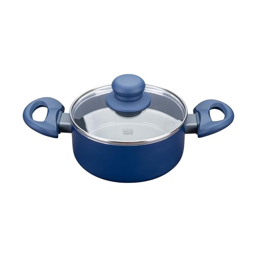 Tasty Casserole antiadhésive Ocean Blue - Ø 16 cm avec couvercle en verre - Aluminium recyclé - Poignée Soft Touch - Revêtement céramique antiadhésif - Pour tous feux dont induction
