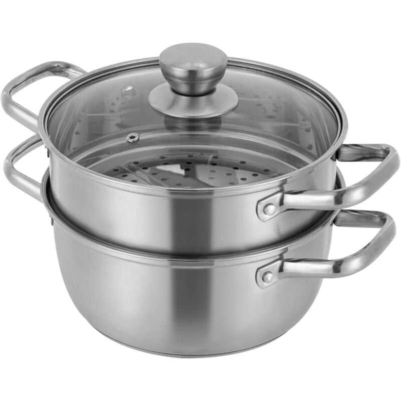 Cuiseur Vapeur et Casserole en Acier Inoxydable Argenté, Rond, 2 Niveaux, 0.26 Gallons, Adapté à Gaz, Induction, Électrique et Céramique