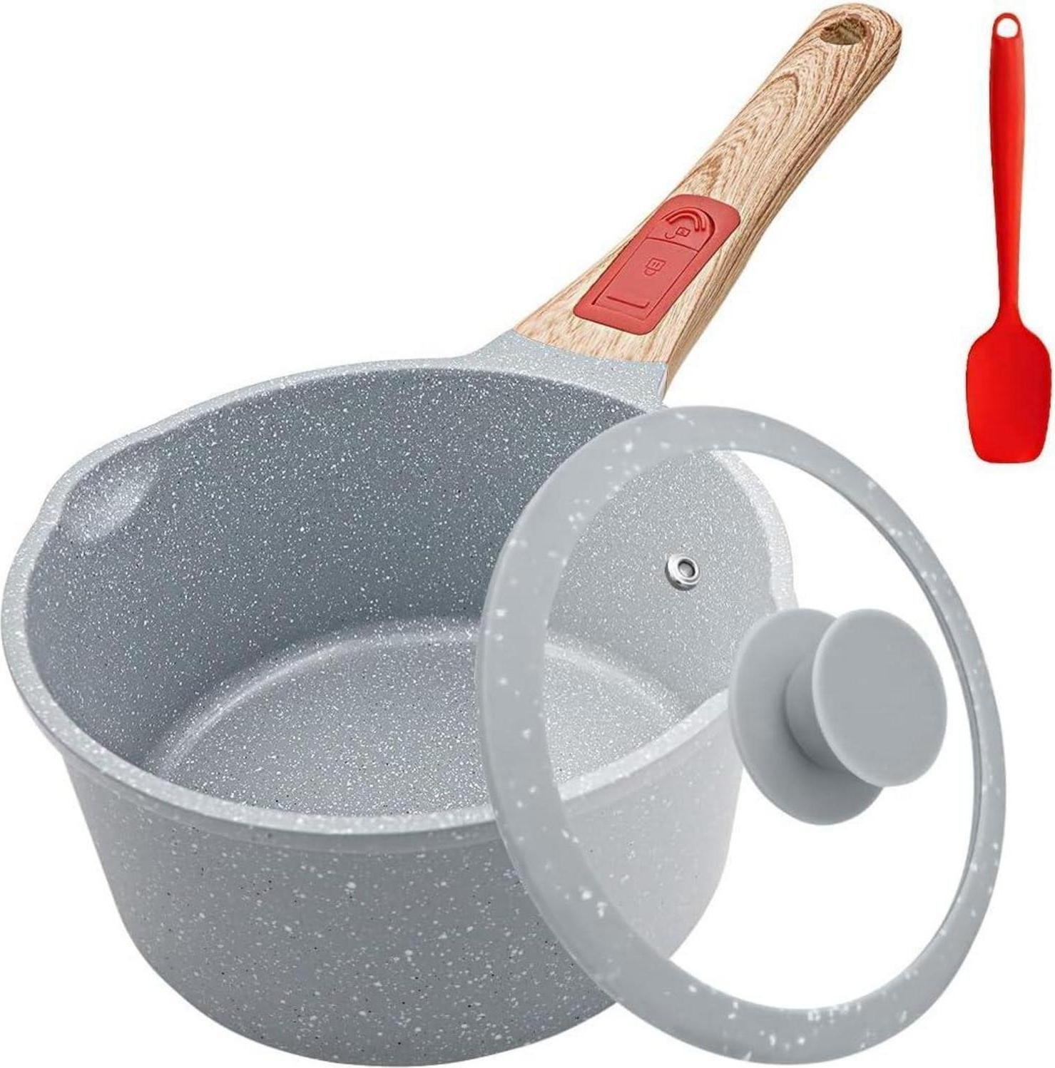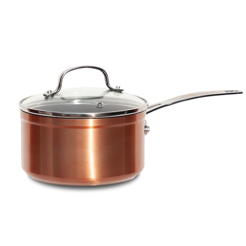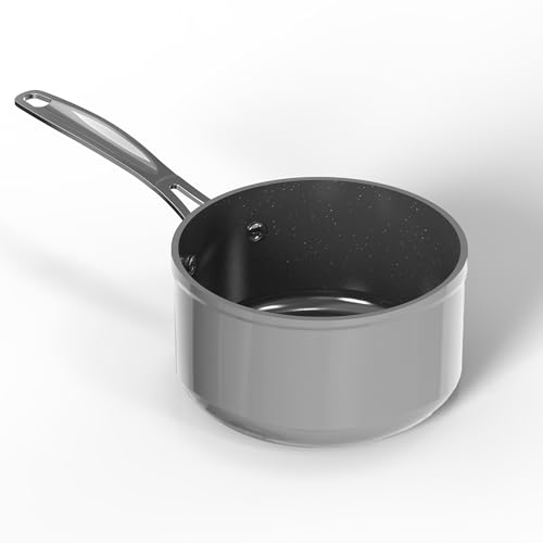 Casserole avec revêtement de microsphères en céramique à 1 poignée pour soupes et sauces - Casserole antiadhésive avec 1 poignée, en aluminium, 16 x 7,5 cm, 1240 cc