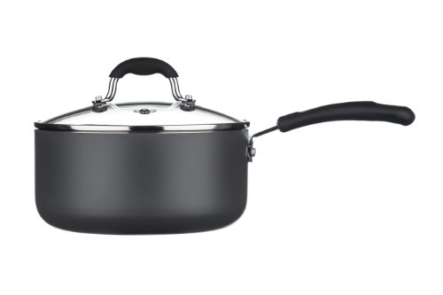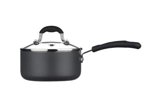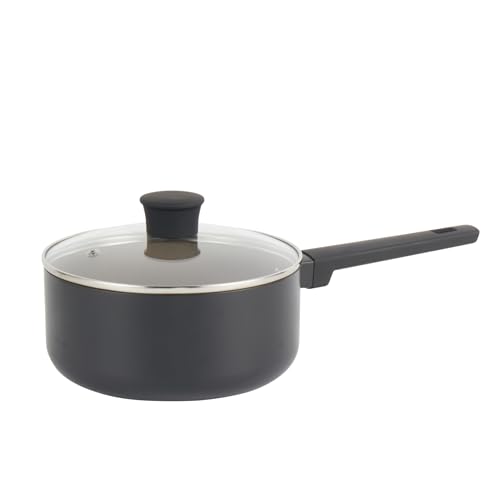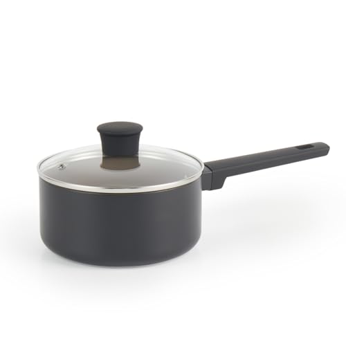 Premier Housewares Casserole avec Couvercle - Ustensile de Cuisine – Sauteuse avec Poignée -Noir -16 Cm-Aluminium/Céramique, Couvercle en Graphite/Verre