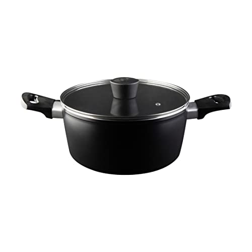 MasterChef Casserole Tout Feux, Induction, Gaz, Céramique et Plus, Anti-adhésive, Revêtement Anti-Dérapant, Poignée Ergonomique, Couvercle en Verre, 20cm, Noir