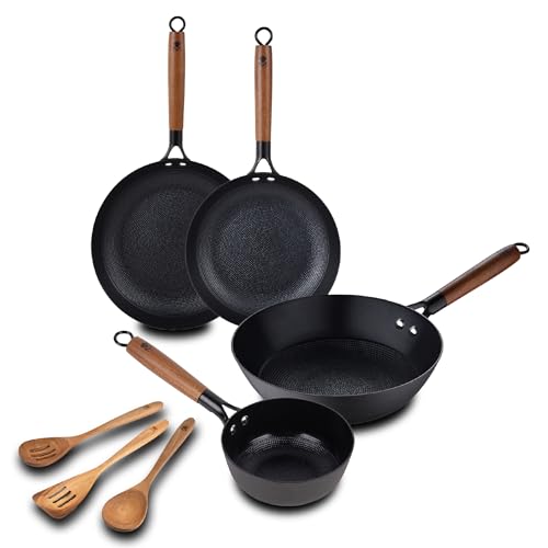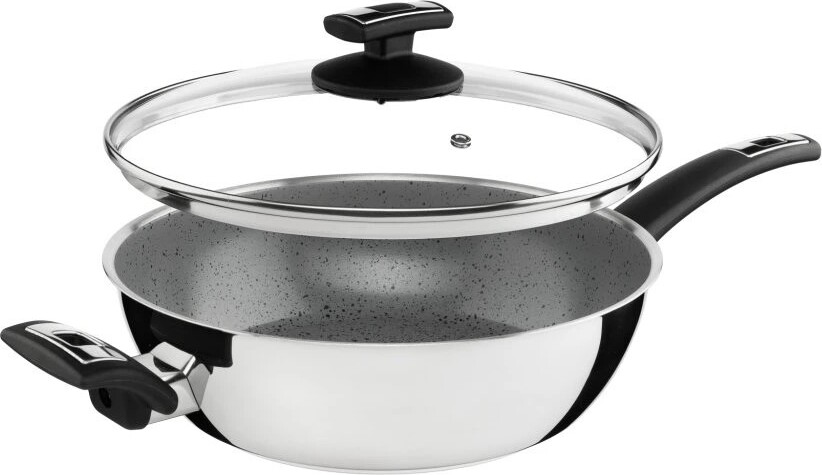 MasterPRO ODIN - Kit Cuisson : 3 Ustensiles - Poêle 28cm - Wok 24cm - Poêle 24cm - Casserole 16cm - Revêtement Céramique Antiadhésif - Poignées en Acacia - Convient à toutes les cuisinières