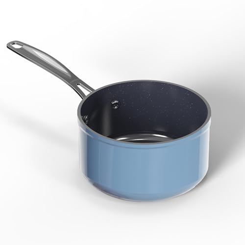 Nuwave Casserole en céramique Duralon bleu sain 1,4 L, sans PFAS, lavable au lave-vaisselle et au four et compatible avec l’induction, résistante aux rayures infusée de diamant, poignées Stay Cool
