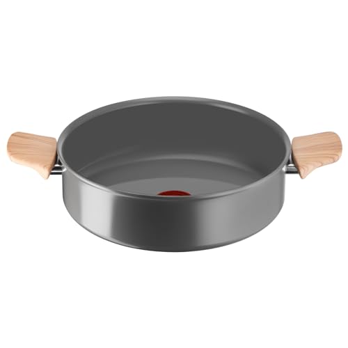 MasterChef Casserole Tout Feux, Induction, Gaz, Céramique et Plus, Anti-adhésive, Revêtement Anti-Dérapant, Poignées au Toucher Doux, Couvercle en Verre, 24cm, Aspect Bois