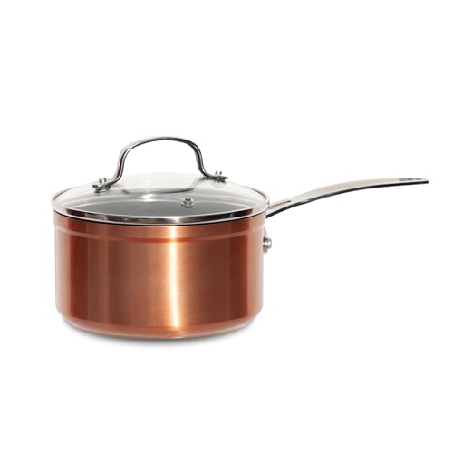 Casserole en céramique 16 cm avec couvercle et poignée, 1.5L anti-adhésif - Braun