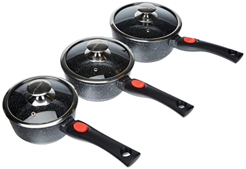 Kamberg - Set 3 Casseroles 16 / 18 / 20 cm - Manche Amovible - Fonte d'Aluminium - Revêtement Type Pierre - Tous Feux dont Induction - Sans PFOA - Sans couvercle - 0008038, Noir