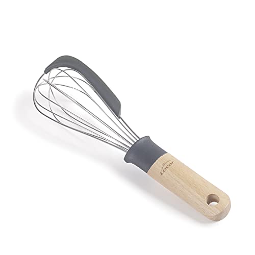 Lacor 68199 Unite, Fouet Manuel avec racloir, Manche en Bois de hêtre, grattoir en Silicone, Tige en Acier Inoxydable, sans BPA, Longueur : 27 cm, Gris, INOX