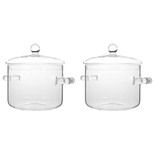 Ynusgeyx 2X Casserole en Verre avec Couvercle, Marmite avec Couvercle et Poignée, Marmite à Mijoter, Marmite à Soupe Transparente, Haute Teneur en Borosilicate 1400 ML
