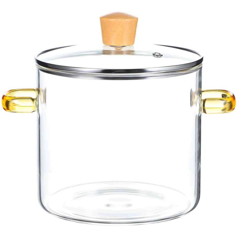 Asyduey Casserole en Verre Marmite Transparente Marmite à Soupe Chauffage Casserole en Verre à Double Poignées avec Couvercle Facile à Installer Facile à Utiliser Or