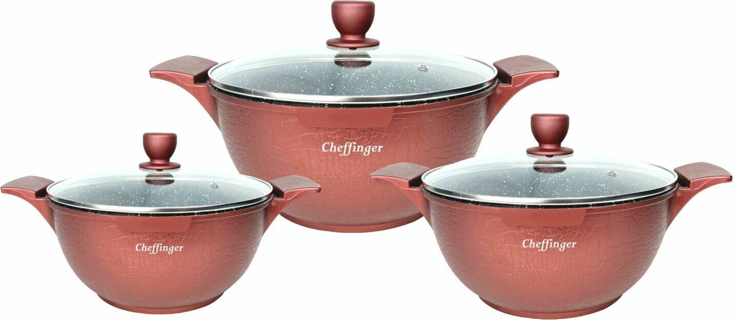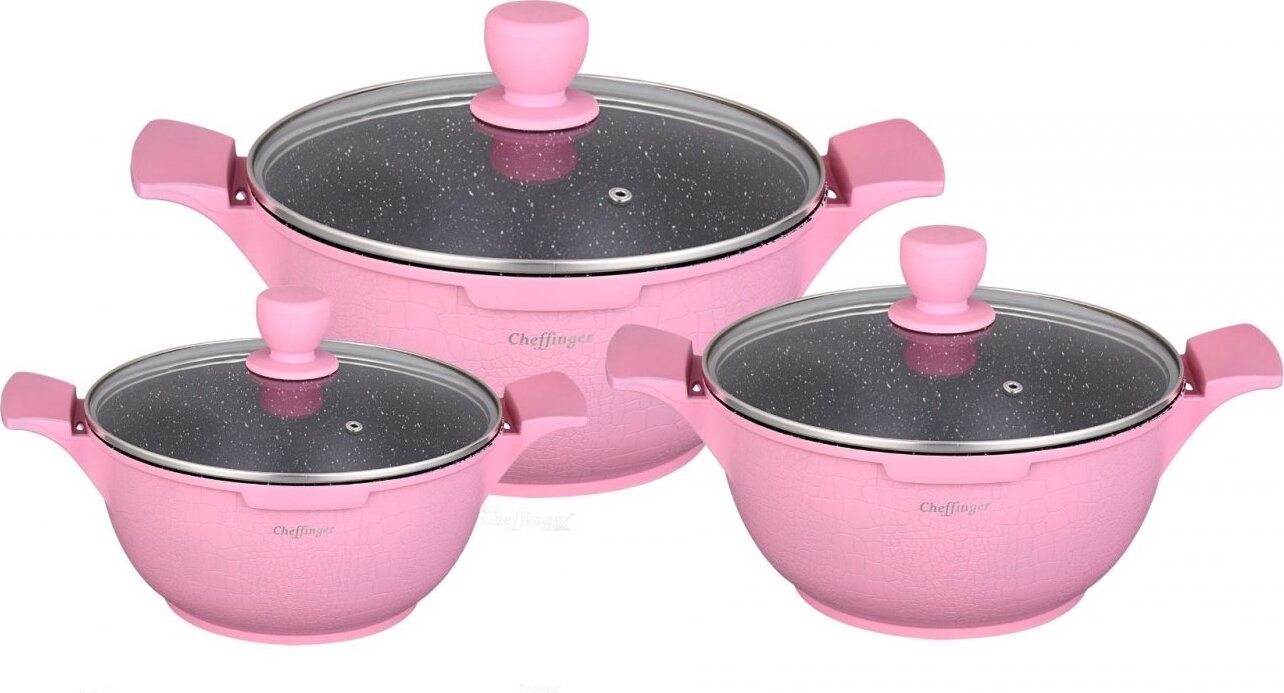Set de casseroles 20-24-28cm 6 pcs Casserole Induction Alu Fonte Vaisselle Rose