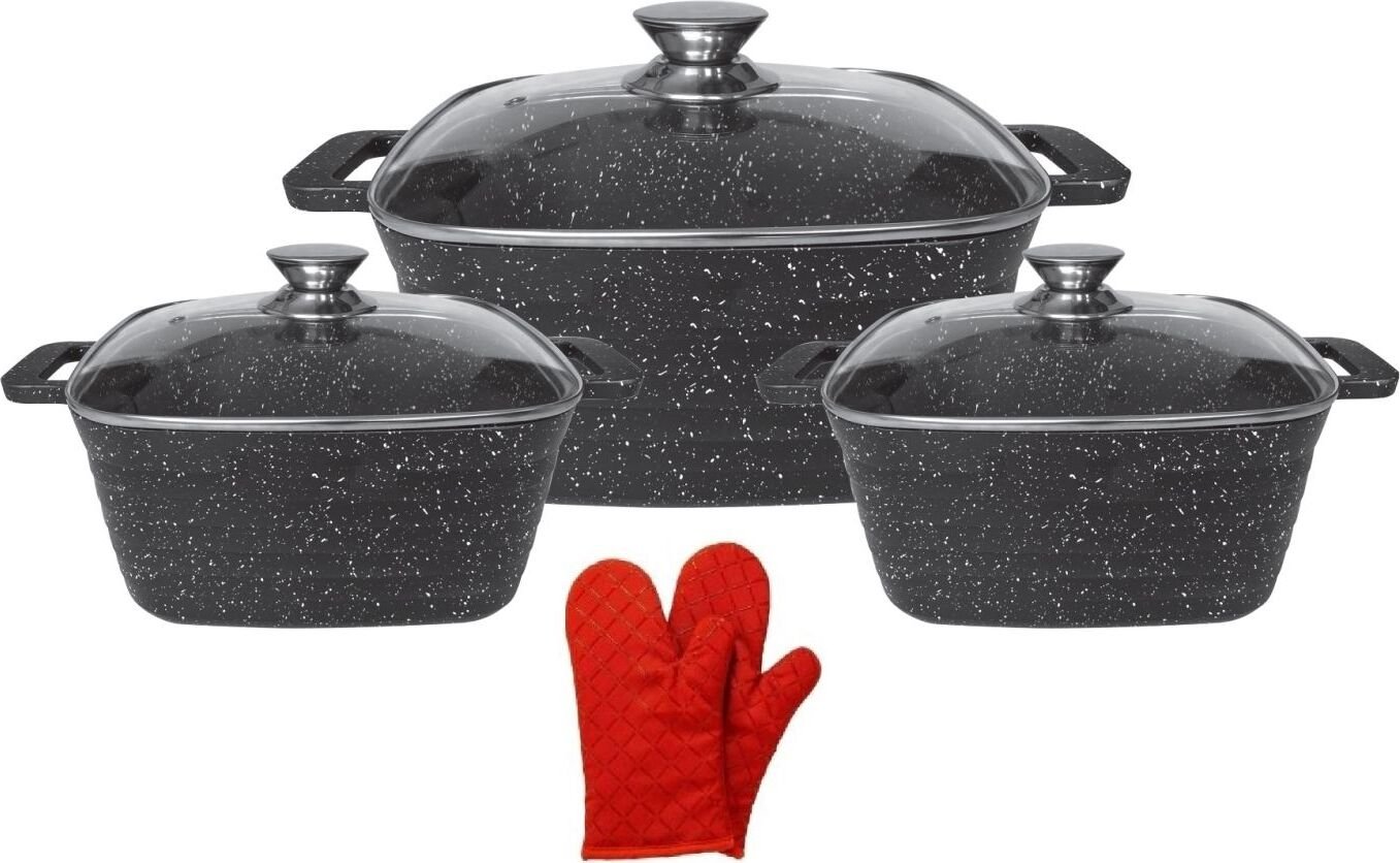 Set de casseroles Carré 6 pcs Casserole Induction Fonte Alu Marbre