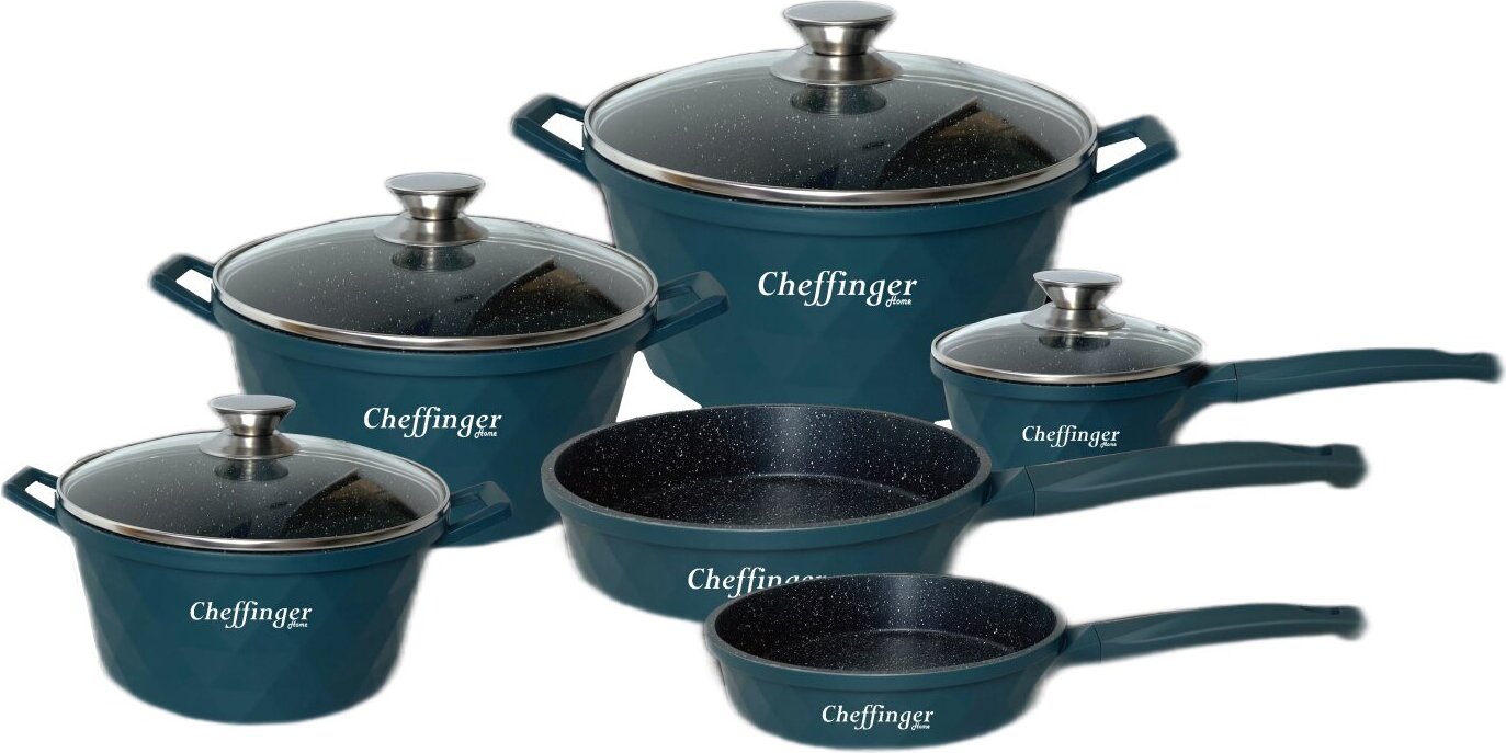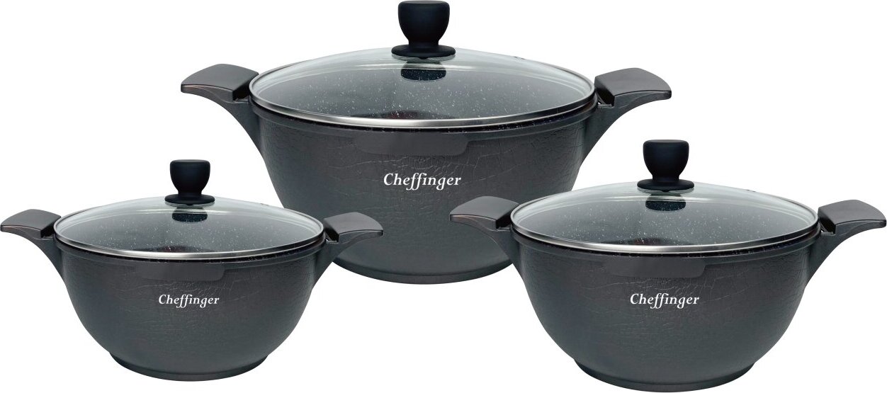 Cheffinger ASIA set de casseroles 6 pcs. casserole induction alu fonte 2 gants