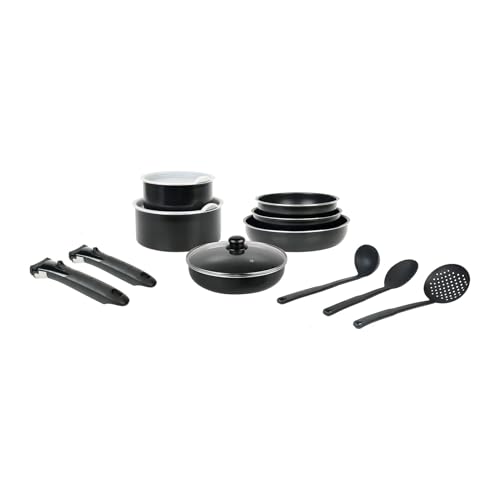 Sitram 716943 Batterie cuisine 14 pcs Alu recyclé : 2 manches amov. 1 Sauteuse Ø26cm 1 couv. verre 3 Poêles Ø20,24,28 2 Casseroles Ø16,20 2 couv. plastic Ø16,20 3 ustensiles tous feux dont induction