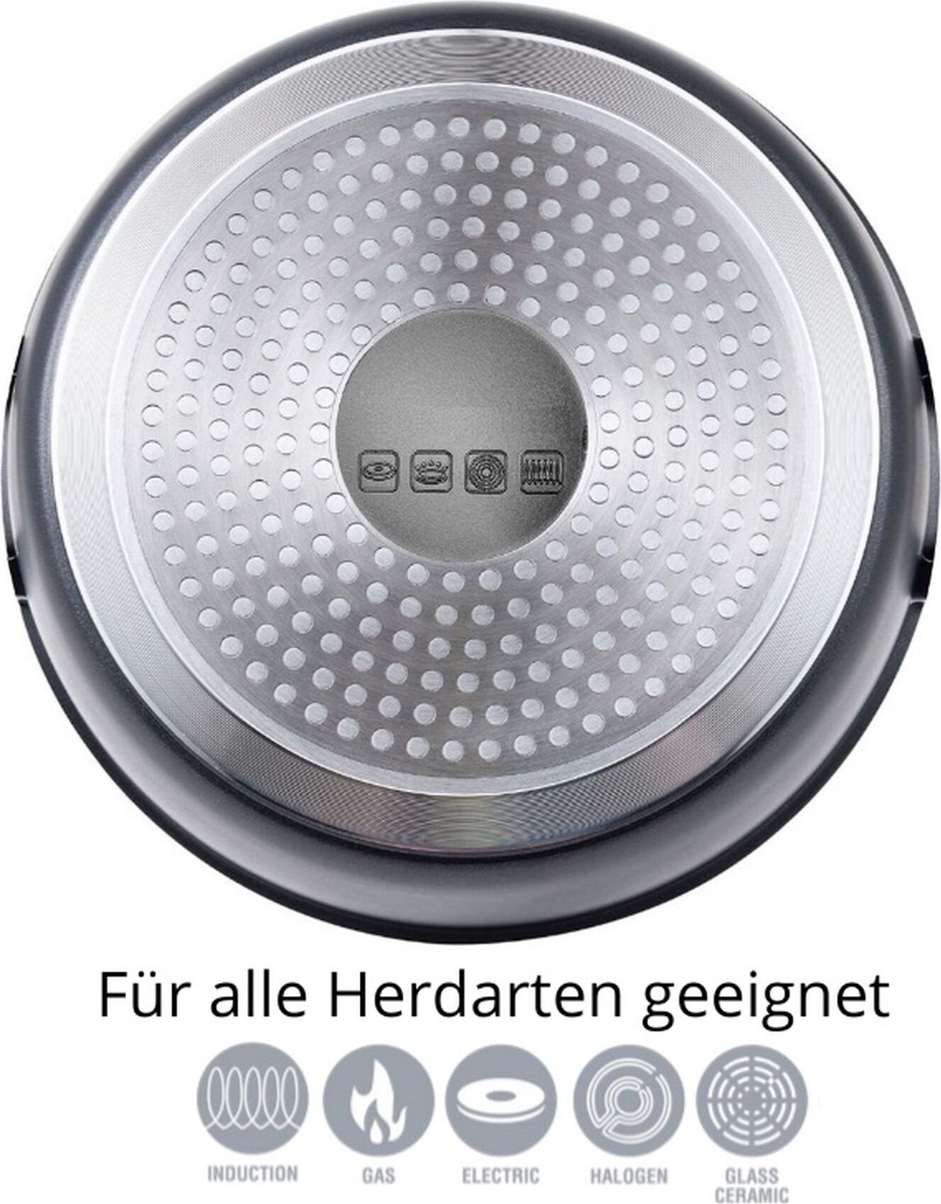 set de 12 casseroles à induction Diamant Casserole Induction Alu Fonte Couvercle Gants Gris