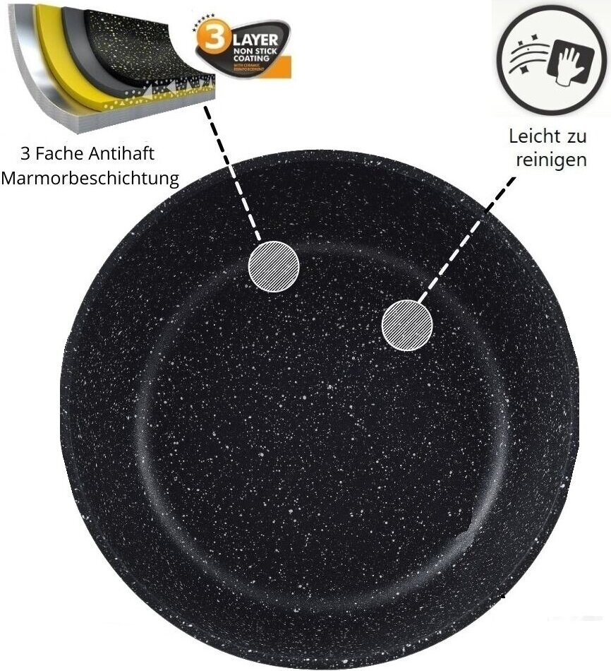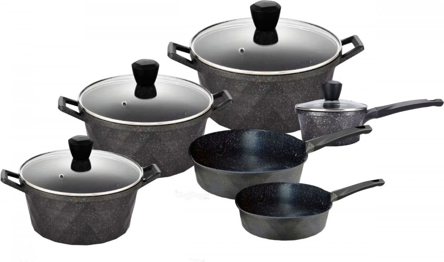 Set de casseroles 20-24-28cm 6 pcs Casserole Induction Alu Fonte Vaisselle Noir