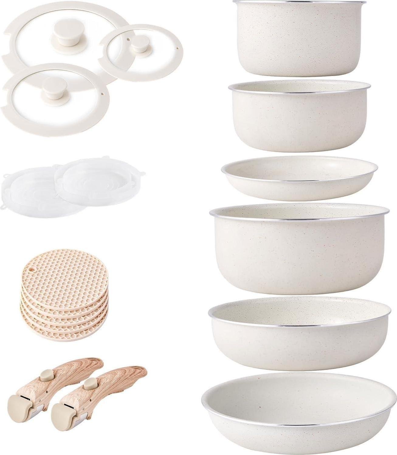 Casseroles à induction Set de poêles amovibles Poignées anti-adhésives Granit Couvercles en silicone