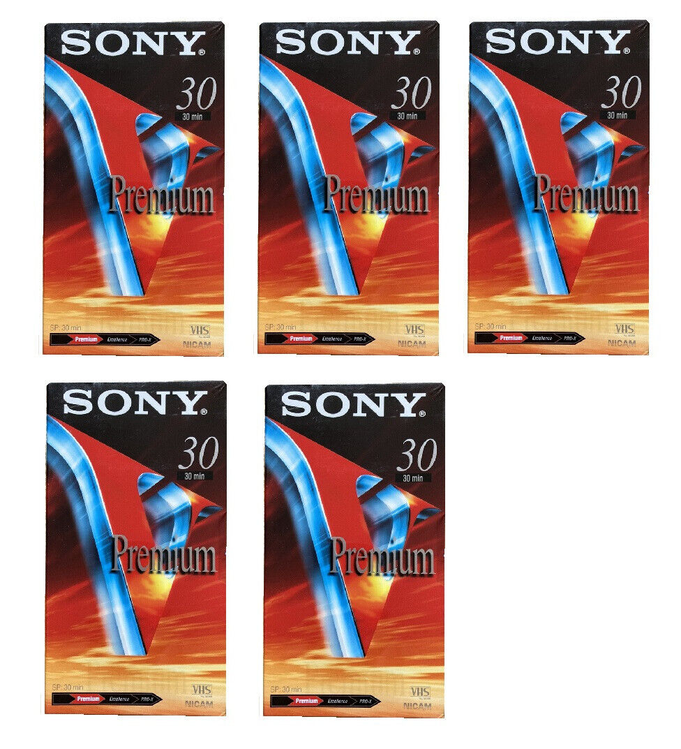 5 Pièces SONY VHS Cassette Vidéo Premium E-30VG 30Min Cassette Vide - NEU