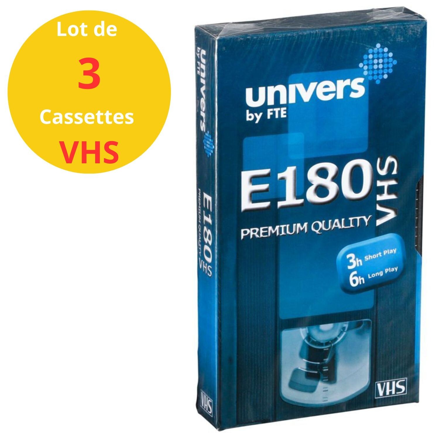Cassette VHS Vierge - E180 - 3 Heures - Premium - Lot de 3 Cassettes Video