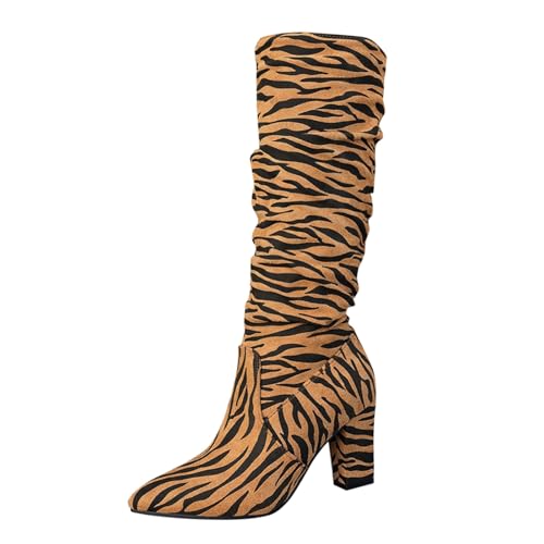 Bottes Femme à Talon Haut Bout Pointu Bottes Hautes en Daim Suédé Style Britannique Élégantes Légères Confortables Casual Chic Femme Chaussures Montante Boots Automne Hiver 42