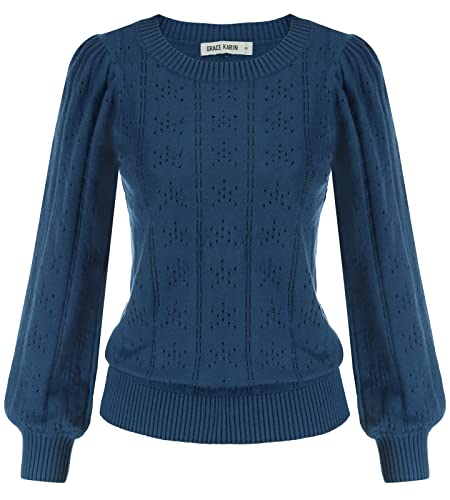 GRACE KARIN Caasual Chandail Femme Manche Longue Chic Pull Sweatshirt Col Rond Sweatshirt Ample Décontracté Casual et Chic Bleu Marine -2 S
