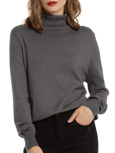 Woolen Bloom Pull Femme à Manches Longues sous Pull Col Roulé Sweater Tricoté Pullover Moderne Ajusté Sweat Casual Chic Top Basique Jumper Léger Couleur Unie Printemps Automne Hiver ,Gris,L