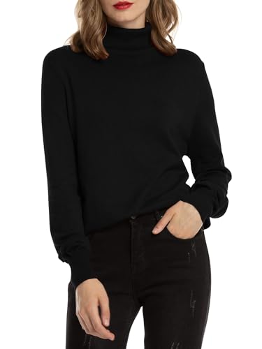 Woolen Bloom Pull Femme à Manches Longues sous Pull Col Roulé Sweater Tricoté Pullover Moderne Ajusté Sweat Casual Chic Top Basique Jumper Léger Couleur Unie Printemps Automne Hiver ,Noir,L