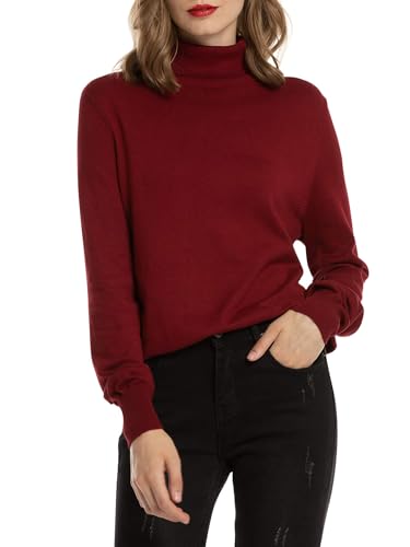 Woolen Bloom Pull Femme à Manches Longues sous Pull Col Roulé Sweater Tricoté Pullover Moderne Ajusté Sweat Casual Chic Top Basique Jumper Léger Couleur Unie Printemps Automne Hiver ,Rouge Vineux,XXL
