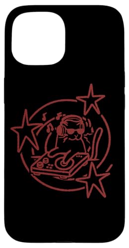 Y2K 90s DJ Cat Tomcat avec platines et Casque Coque pour iPhone 15