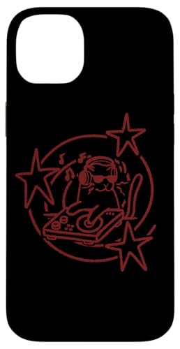 Y2K 90s DJ Cat Tomcat avec platines et Casque Coque pour iPhone 14 Plus