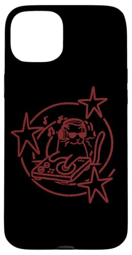 Y2K 90s DJ Cat Tomcat avec platines et Casque Coque pour iPhone 15 Plus
