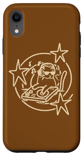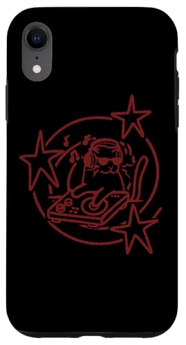 Y2K 90s DJ Cat Tomcat avec platines et Casque Coque pour iPhone XR