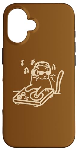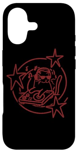 Y2K 90s DJ Tomcat Cat avec platines et Casque Coque pour iPhone 16 Plus