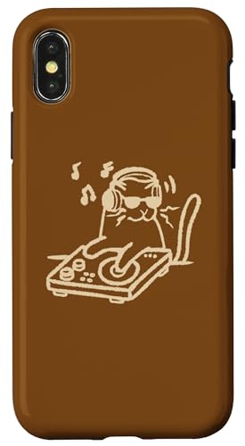 Y2K 90s DJ Cat Tomcat avec platines et Casque Coque pour iPhone XS Max