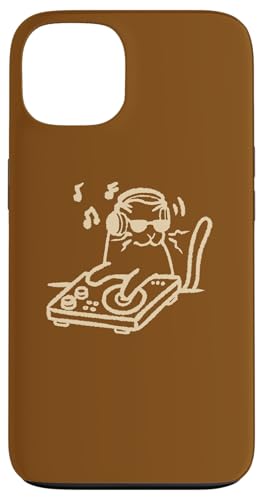 Y2K 90s DJ Cat Tomcat avec platines et Casque Coque pour iPhone 13 Pro