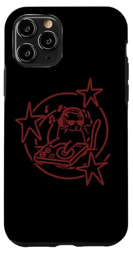 Y2K 90s DJ Cat Tomcat avec platines et Casque Coque pour iPhone 11 Pro