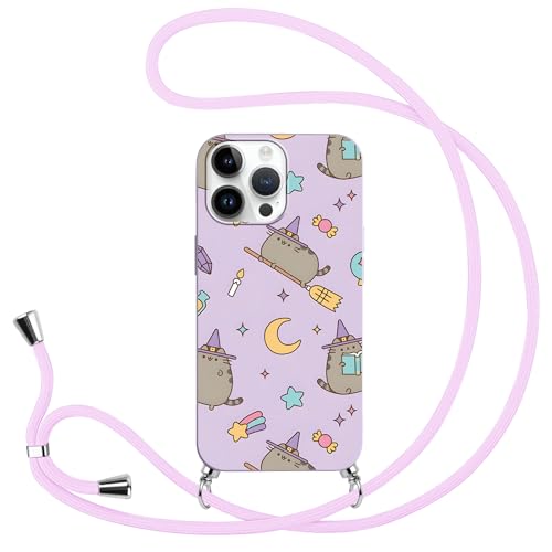 Coque avec Cordon pour Samsung Galaxy S22 5G 6.1", Cute Cartoon Chaton Pusheen Mignon Anime Cat Motif Chaîne Collier Cover,Étui Antichoc Protection Housse Réglable Collier Lanyard Case,Comics