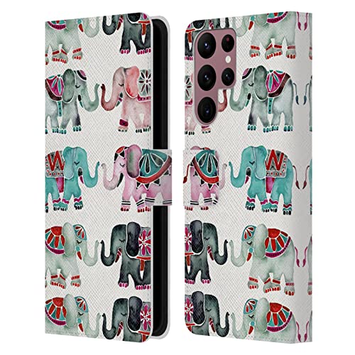 Head Case Designs sous Licence Officielle Cat Coquillette Turquiose Éléphants Rouges Animaux 2 Étui Portefeuille en Cuir Compatible avec Samsung Galaxy S22 Ultra 5G