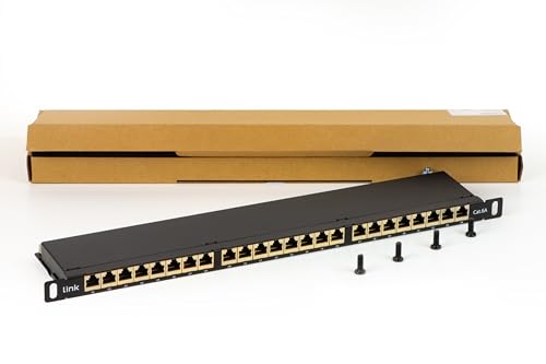 LINK LKP6A24SA Panneau Patch 24 Ports Catégorie 6A Blindage 0,5 unité avec Barre de Support de câbles, Noir