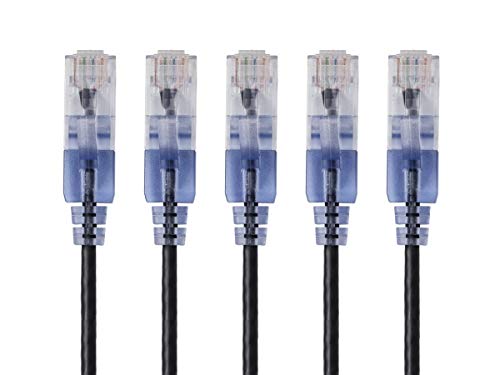 Monoprice SlimRun Lot de 5 câbles de raccordement Ethernet catégorie 6A, fil de cuivre pur nu RJ45 sans accroc 550 MHz, UTP 0,05 mm², 7 G, 2,1 m, noir