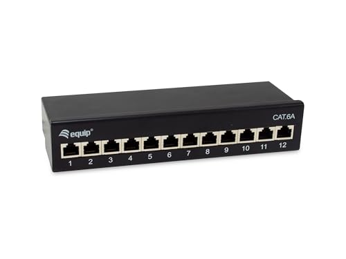 Equip 326622 Panneau de Brassage blindé de Bureau, 12 Ports, catégorie 6A, Noir