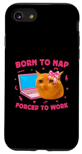 Born to Nap Forced to Work Funny Crying Cat Girl Meme Laptop Coque pour iPhone SE (2020) / 7/8