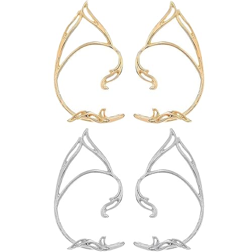 Lot de 2 paires de boucles d'oreilles d'elfe pour femme - Or et argent - Boucles d'oreilles Catwoman - Oreilles d'elfe - Oreilles d'elfe - Bijoux pour costume d'elfe - Costume de fée - Costume de fée