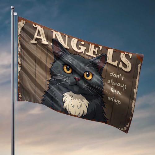 Drapeaux pour chambre à coucher Angels Don'T Always Have Wings: A Whimsical Cat Illustration Drapeau Man Cave Accessoires et Décoration Manches à air Extérieur (30 x 45 cm)